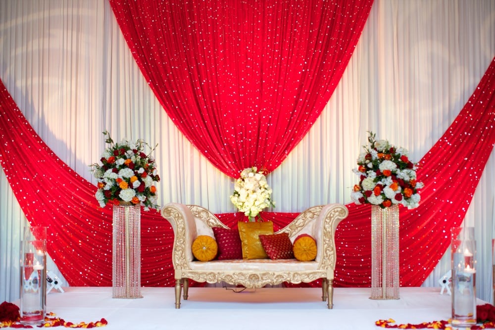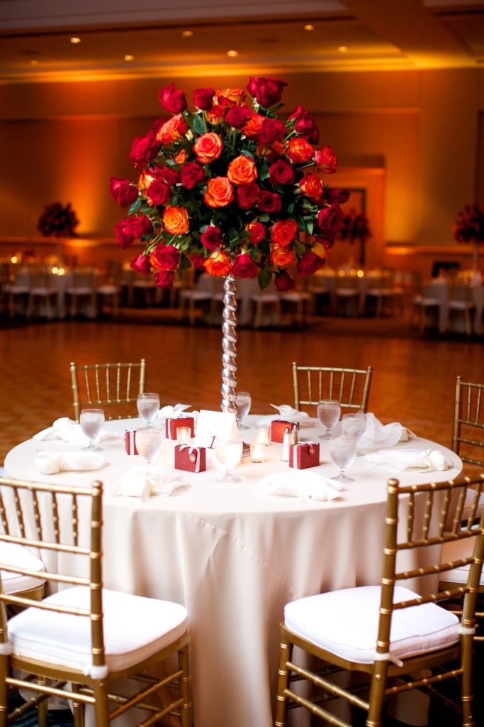 Luckily, less than a month out, it wasn’t too late to call Décor to Adore. Sonia had a beautiful color scheme of ivories, reds, champagne, and gold. Décor to Adore had the perfect selection of linens to compliment Sonia’s color scheme.