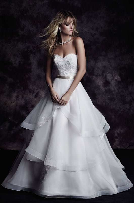 This is probably the most well known shape for bridal gowns, but don’t write them off as simple. An A-line can go anywhere from traditional to modern. Paloma Blanca is an amazing design with a plethora of beautiful A-line dresses that can be found at The White Room.