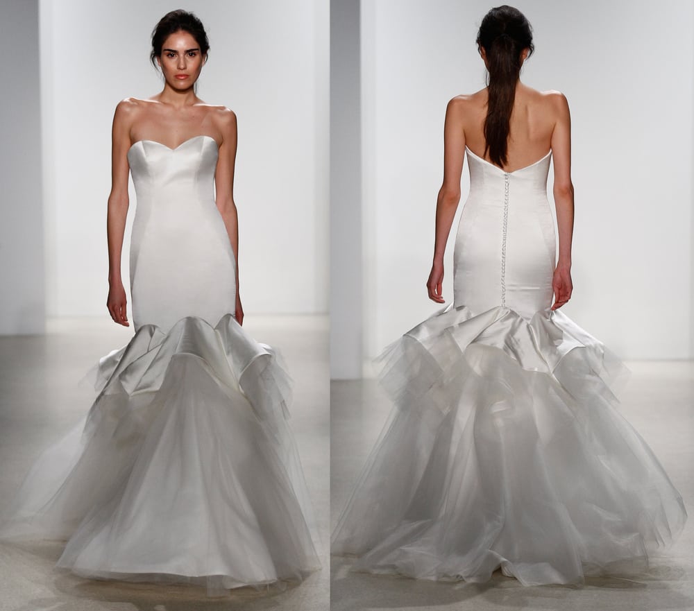 For a bride wanting to show off more of her figure a fit to flare or mermaid dress is the perfect fit. It gives the bride a little more appealing look without straying from a classic look. Kelly Faetanini has a large collection of fit to flare dresses from simple and elegant to sassy and fun and she can be found at Carriage House Weddings.