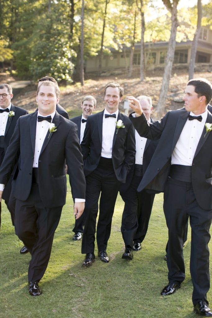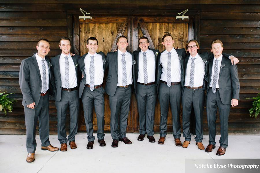 Groom, Adam, opted for more formal attire with tuxedo pants and a classy skinny tie. Look closely . . . can you see where the groomsmen were able to add their own touch? With their shoes! After all, comfort is important for groomsmen too.